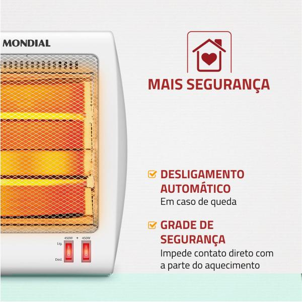 2 níveis de aquecimento: São 2 opções de potência, 450W e 900W, para controlar a temperatura de acordo com sua preferência.