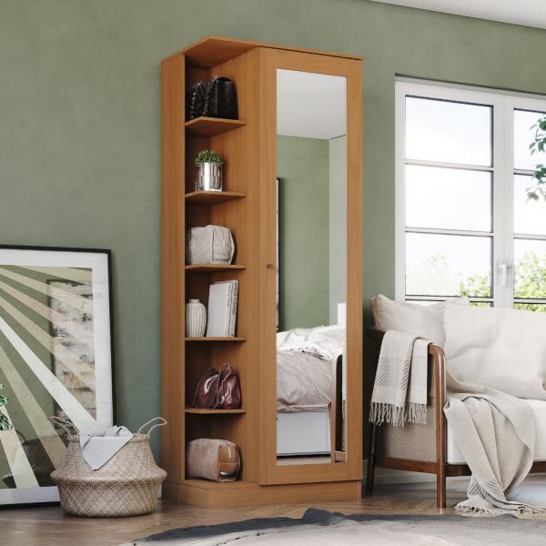 Possui como diferenciais um grande e lindo espelho com moldura, 6 nichos laterais ideal para bolsas e sapatos além de possuir opção de montagem direita/esquerda.