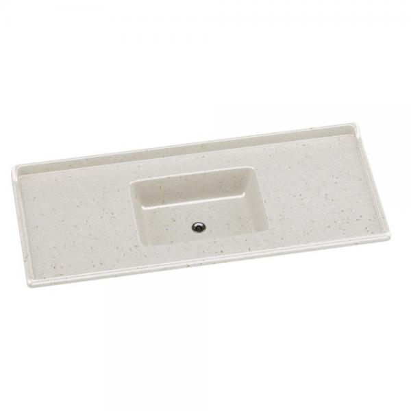 Produto em mármore sintético com espessuras reforçadas, com cobertura granitada de gel coat com brilho e resistência incomparáveis. Superfícies mais lisas sem porosidade proporcionando maior higiene e fácil limpeza. Pias com protetor de parede e canaletas altas, evitando o derramamento acidental de água.