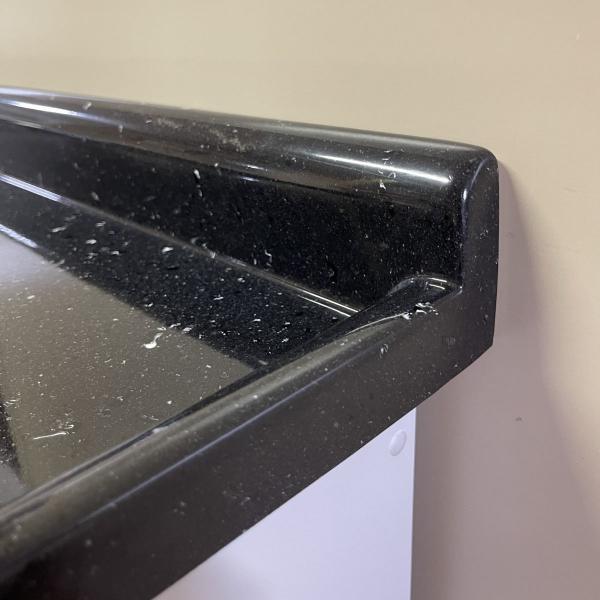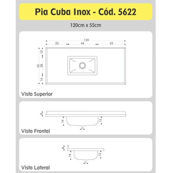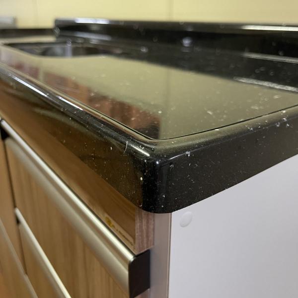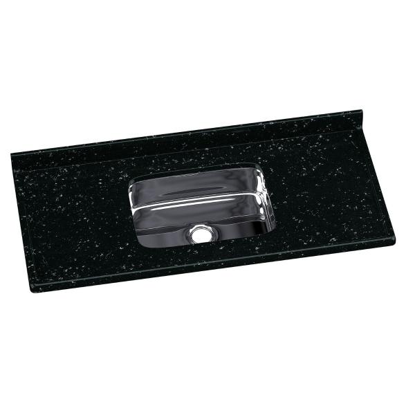 Produto em mármore sintético com espessuras reforçadas, com cobertura granitada de gel coat com brilho e resistência incomparáveis e cuba de aço Inox.