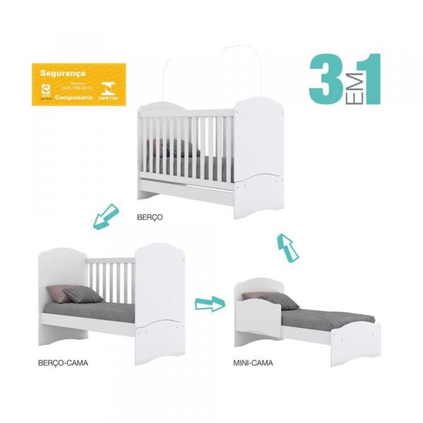O Berço mini-cama Bala de Menta Certificado Inmetro produzido em estrutura MDP 12 mm/MDP 15 mm e MDF 12 mm e com acabamento em P.U. e U.V. é perfeito para o quartinho do seu filho.