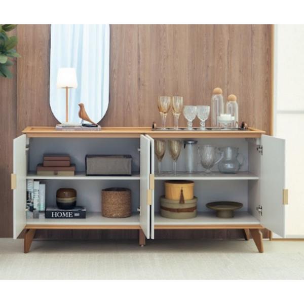 O Buffet Évora traz elegância os seu ambiente, com um design atual contendo quatro portas, puxadores sobrepor, tampo com detalhe rebaixado e pés chanfrado a composição que vai deixar seu espaço incrível.