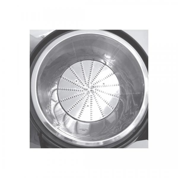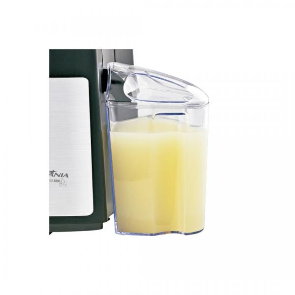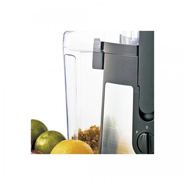 Esse processador é equipado com uma escova para facilitar a limpeza do aparelho, coletor de resíduos que serve como depósito para sementes e bagaços das frutas e hortaliças processadas e ainda uma prática e resistente jarra de suco.