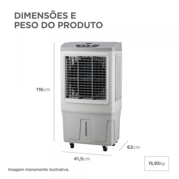 Com reservatório de 76 litros, oferece longa autonomia de funcionamento, sendo ideal para grandes áreas residenciais ou comerciais. Seu motor de 210W proporciona alto fluxo de ar e refrescância uniforme, potencializada pelo sistema de oscilação que distribui o ar de forma eficiente por todo o ambiente.
