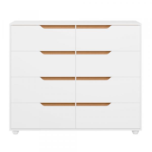 A Cômoda Doble é moderna e funcional. Dispõe de 8 gavetas para manter suas roupas e objetos pessoais mais organizados. Possui reforço estrutural e os puxadores são em formato cava. Seu design garantirá mais beleza ao seu ambiente.