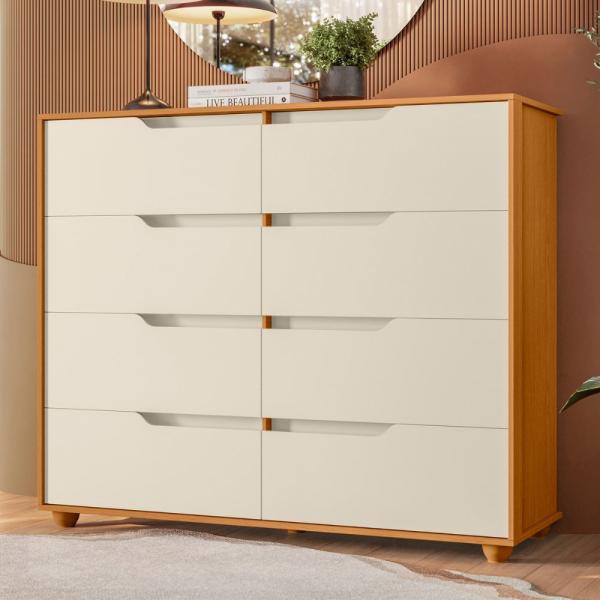 A Cômoda Doble é moderna e funcional. Dispõe de 8 gavetas para manter suas roupas e objetos pessoais mais organizados. Possui reforço estrutural e os puxadores são em formato cava. Seu design garantirá mais beleza ao seu ambiente.