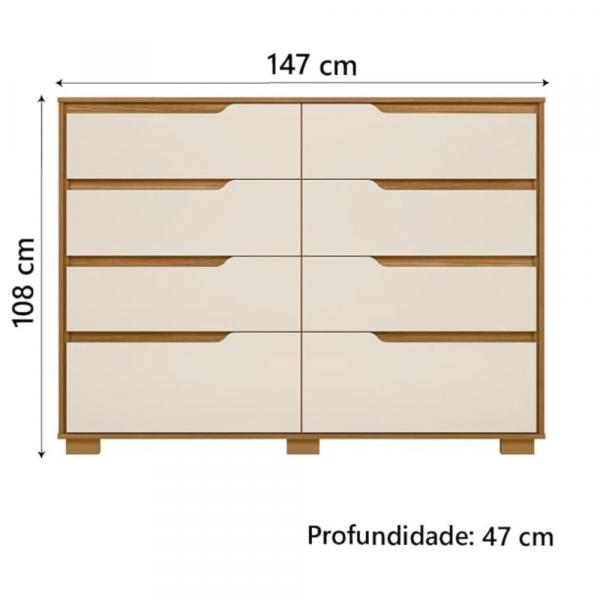 O design é outro ponto alto deste produto. Com linhas simples e elegantes, a cômoda Moval com 8 gavetas se adapta facilmente a diversos estilos de decoração, do clássico ao moderno, contribuindo para a beleza e aconchego do seu espaço. Seja no quarto, no closet ou até mesmo em outros ambientes da casa, ela traz funcionalidade e charme.