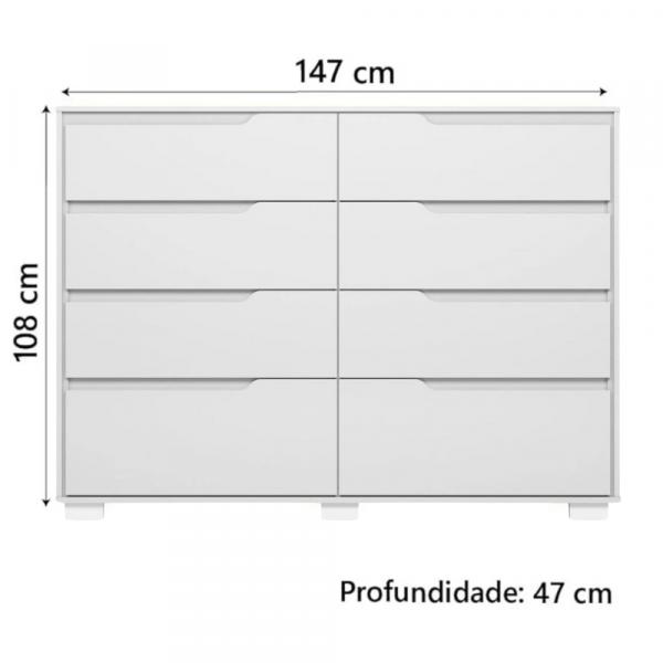O design é outro ponto alto deste produto. Com linhas simples e elegantes, a cômoda Moval com 8 gavetas se adapta facilmente a diversos estilos de decoração, do clássico ao moderno, contribuindo para a beleza e aconchego do seu espaço. Seja no quarto, no closet ou até mesmo em outros ambientes da casa, ela traz funcionalidade e charme.