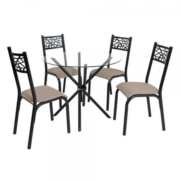 O conjunto de mesa Jade Slim, é o conjunto ideal para sua cozinha, estrutura em aço carbono com Tampo de Vidro Incolor de 0,90m redondo possui 4 cadeiras com design moderno e anatômico, estofado com revestimento em courino sintético de fácil limpeza.