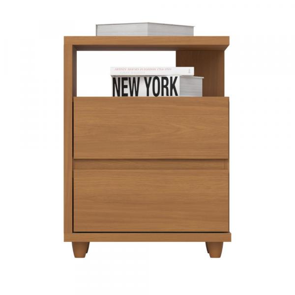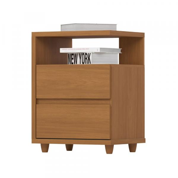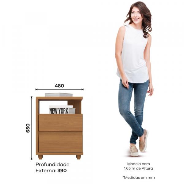 Criado Mudo Campeche, estrutura em MDP e MDF, composto por 2 gavetas externas com corrediças metálicas e acabamento soft que dispensa o uso de puxadores, pés em ABS cônicos que evitam o contato do produto com o chão.