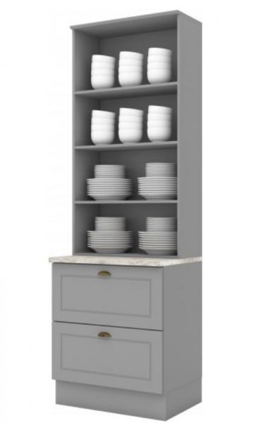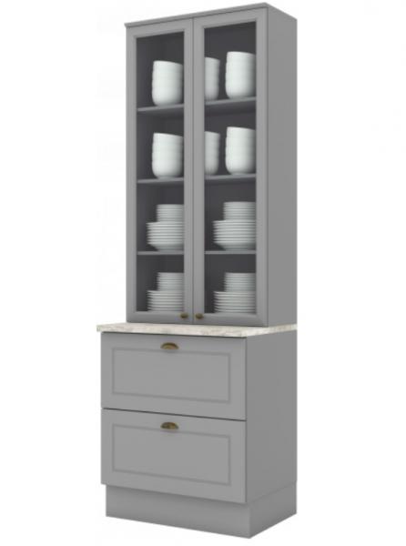 Composto por 02 portas de bater com dobradiças metálicas, vidros nas portas, gavetas com corrediças telescópicas, prateleiras internas, puxadores em metal, este armário é um modulo avulso da composição Cozinha Modulada Americana e é ideal para compor sua cozinha como desejar.