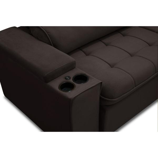 Braços: Retráteis e removíveis, compostos por espuma D-20, com porta copos de poliuretano e entrada para cabo USB