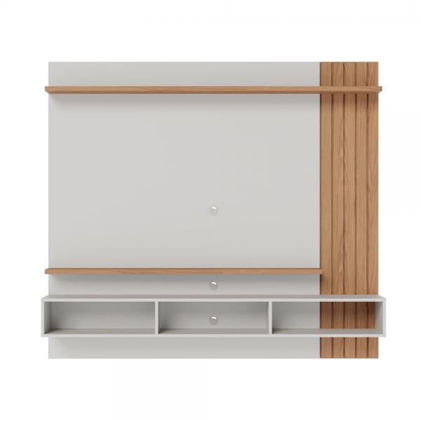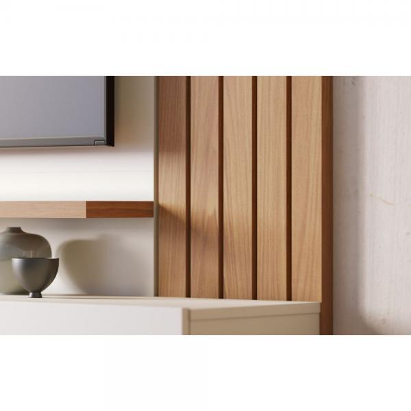 Minimalista e clean, o Home Suspenso Juriti é um painel funcional e uma ótima opção para clientes que buscam um móvel para otimizar o espaço para TV sem abrir mão de televisores maiores, seja ele na sala de estar, home cinemas ou até mesmo em quartos. Com ripados decorativos em sua lateral, possui uma prateleira superior e outra inferior, além de duas portas basculantes com espaço interno para acomodar objetos de maneira prática e organizada, suporta TVs de até 70 polegadas.