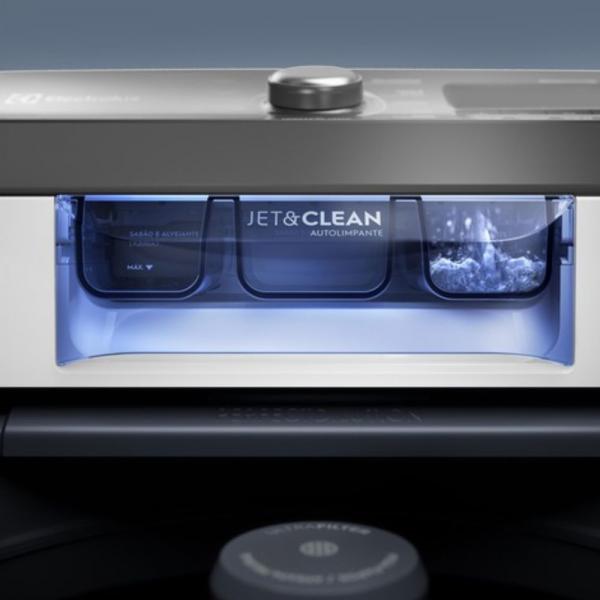 Sua única e exclusiva Tecnologia Jet&Clean dilui até 100% do sabão e do amaciante, evitando manchas e relavagens. O sistema de diluição também mantém o dispenser sempre limpo e sem resíduos de sabão e amaciante.