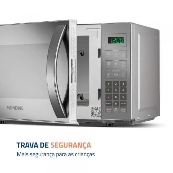 O Micro-ondas Mondial MO-01-21-E de 21 litros une praticidade e estilo para facilitar seu dia a dia. Com alta potência de 1200W, ele garante rapidez no preparo e descongelamento dos alimentos, enquanto o design espelhado leva um toque moderno à sua cozinha. Conta com funções como Menu Dia a Dia, que prepara suas receitas favoritas com um clique, além de Descongelar e Manter Aquecido, que garantem mais comodidade na rotina.