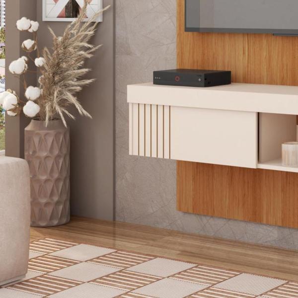 O Painel para TV Jade é a solução perfeita para quem procura um móvel elegante e funcional para otimizar o espaço da sala de estar. Com capacidade para instalar televisores de até 45 polegadas, possui 1,2 m de largura oferece um design moderno e sofisticado que combina com diversos estilos de decoração. Destaque para a lateral e porta que conta com o ripado e que agregará muito mais charme e beleza à sua decoração.