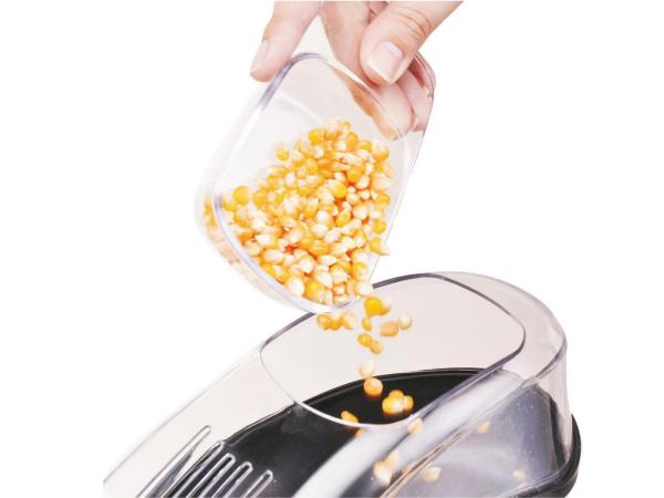 Possui design moderno e copo medidor de milho, faz até 5 ciclos sem precisar deixar o produto esfriar.
